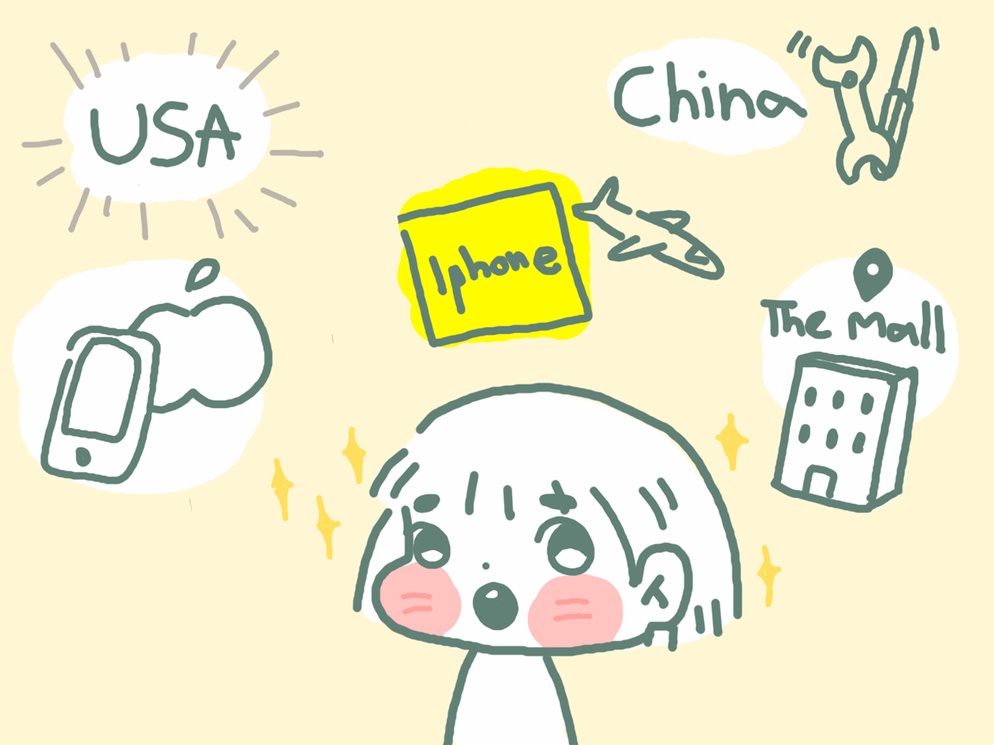 ตัวอย่างเช่น โทรศัพท์มือถือยี่ห้อ Iphone ที่เป็นของประเทศสหรัฐอเมริกา แต่ชิ้นส่วนนำเข้ามาจากต่างประเทศ และถูกประกอบขึ้นที่ประเทศจีน จากนั้นมีการขนส่งข้ามประเทศและนำเข้ามาในไทยโดยบริษัท Apple ที่จัดตั้งในประเทศไทย จากนั้นจึงถูกนำมาจัดนำหน่ายที่ห้างสรรพสินค้าแต่ละท้องถิ่นที่เราสามารถไปซื้อได้
