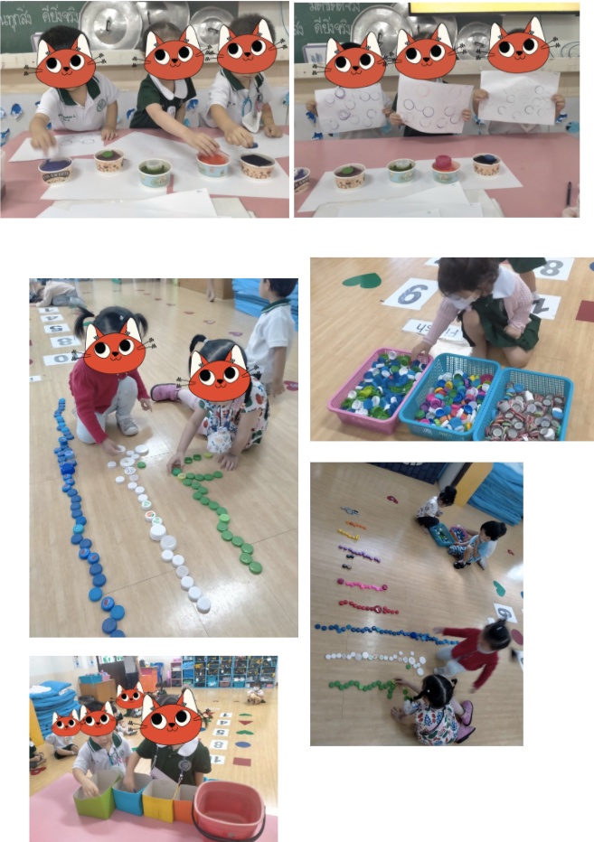 เด็ก ๆ เอาฝาต่าง ๆ ที่เจอมาโรงเรียนมากมายเพื่อทำกิจกรรมกับเพื่อน ๆ ได้ร่วมเป็นผู้เรียนรู้ในห้องเรียน :)