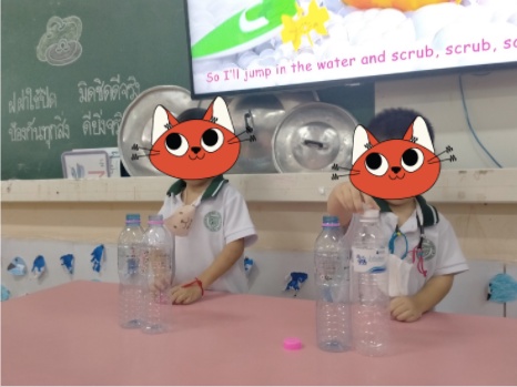 -ร้องเพลงเช่น ABC หรือ Twinkle Twinkle Little Star ร่วมกันโดยมีนักเรียนมาเล่นเคาะจังหวะกับฝาขนาดต่าง ๆ