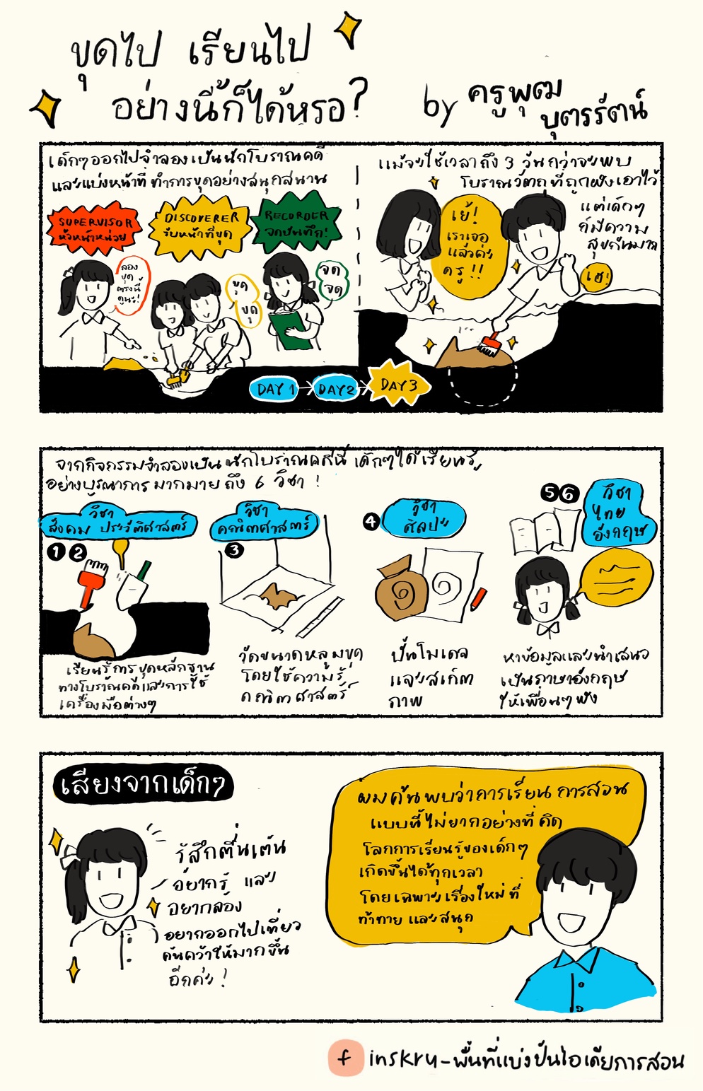 โดยจะให้ออกไปขุดดินดีกว่า เพราะใต้ดิน มีอะไรมากมายให้เด็กเรียน