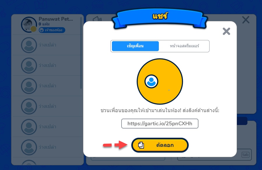 6. เมื่อ เสร็จแล้ว เราก็สามารถ สร้างห้องโดยเลือกหมวดคำถามของเรา และ ส่งลิงค์ให้นักเรียน เข้ามาเล่นกับเราได้แล้ว