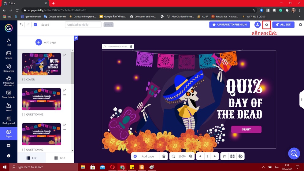 เมื่อปรับแต่งจนเสร็จเรียบร้อย คุณครูสามารถดูหน้าตาของ quiz ได้นะคะ ว่าออกมาเป็นอย่างไรบ้าง และสามารถลองเล่นดูได้เลยค่ะ