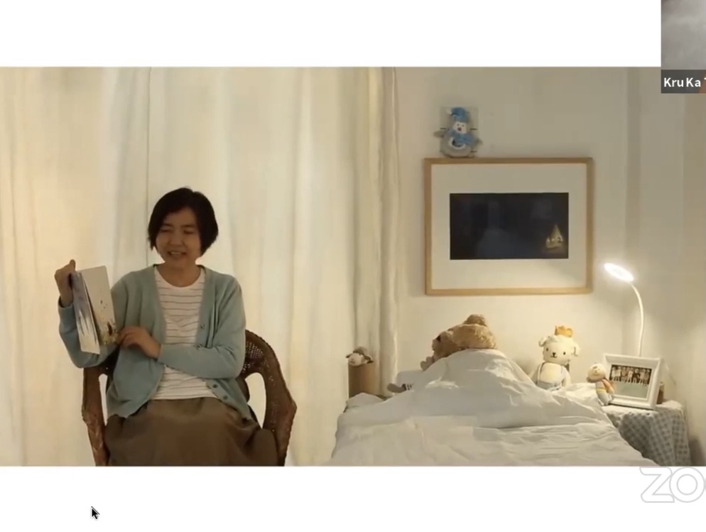 เริ่มแรก ครูก้าให้คุณครูอัด VDO เล่านิทานเรื่องนี้เพื่อส่งให้เด็ก ๆ ฟัง ทั้งน้ำเสียง ท่าทาง การเล่า น่าฟังแลัวก็รู้สึกอบอุ่นหัวใจสุด ๆ ไปเลย สร้างบรรยากาศในการฟังนิทานให้เด็ก ๆ ได้อิ่มเอมไปทั้งวัน