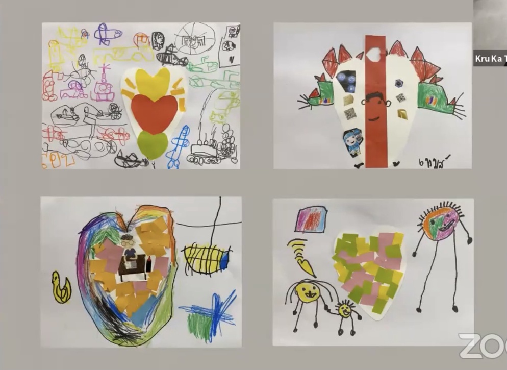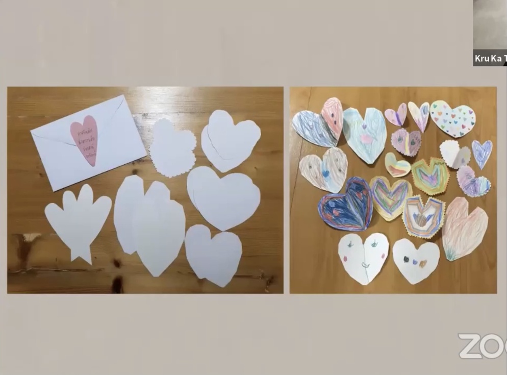 แล้วยังไม่จบแค่นี้ หลังจากที่เด็ก ๆ ได้กลับมาเรียนที่โรงเรียน คุณครูก็ได้นำหัวใจดวงโตมาก ๆ โตกว่าตัวเด็ก ๆ อีกมาให้เด็ก ๆ แบ่งปันความรักให้กับเพื่อน ๆ ในห้อง ให้กับคุณครู ให้กับคนรอบตัวที่โรงเรียน แถมหัวใจดวงโต ๆ นี้ เป็นหัวใจที่เด็ก ๆ ทุกคนออกแบบและทำร่วมกันเป็นผลงานของทุกคนอีกด้วย