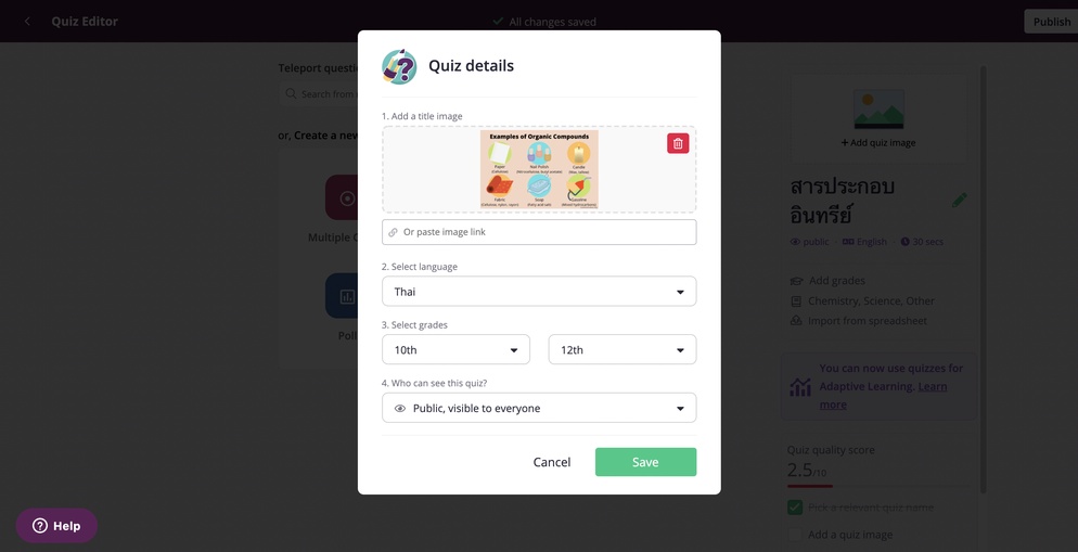 ขั้นที่ 3 : แก้ไขรายละเอียดของเกม โดยใส่ภาพประกอบ เลือกภาษา และระดับชั้น
