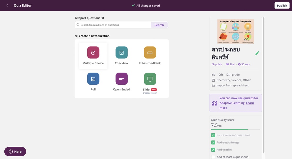 ครูเอขอแนะนำให้คุณครูสร้างชุดคำถามไว้ก่อน