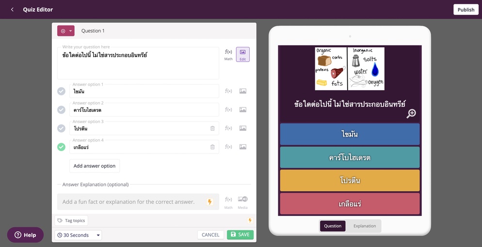และที่สำคัญทั้งชั้นเรียนยังสามารถรีวิวหลังจบเกมได้ด้วยว่า ใครตอบผิดข้อไหนบ้าง เพื่อแก้ไขให้ถูกต้อง