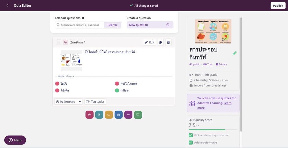 คุณครูสามารถเพิ่มรูปให้กับคำถาม เพื่อสร้างความสนใจ หรือเป็นการให้ข้อมูลเพิ่มเติมกับเด็กๆ ได้ค่ะ