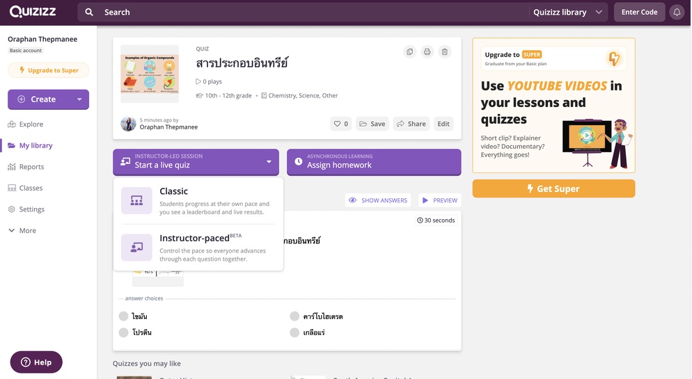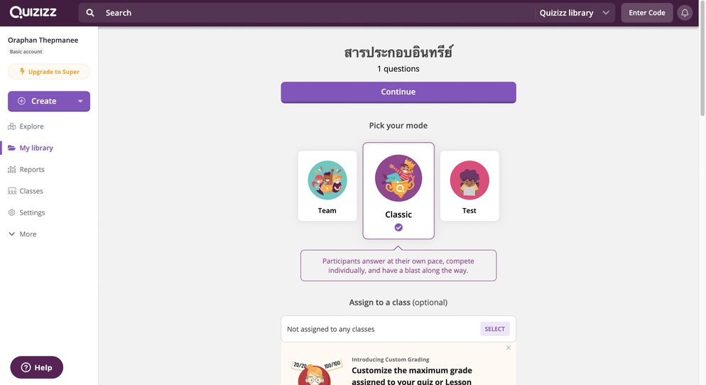 คุณครูสามารถเลือกให้ผู้เล่นเล่นแยกกัน (Classic) หรือให้ผู้เล่นเล่นแต่ละข้อไปพร้อมกัน (Instructor-paced) ก็ได้นะคะ