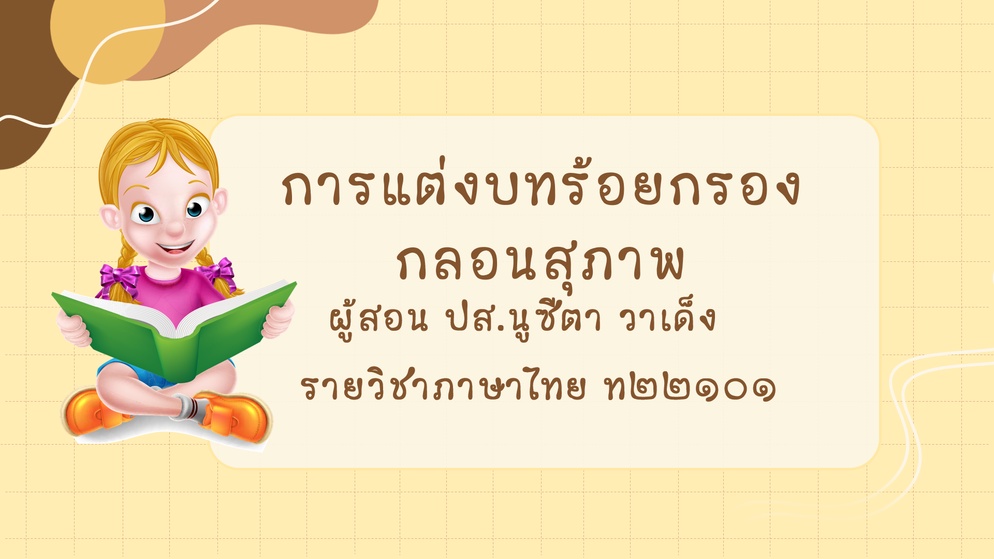 ไอเดียนี้ได้รวบรวมเรื่อง การแต่งบทร้อยกรอง ประเภทกลอนสุภาพ หากคุณครูท่านใดสนใจสามารถนำไปปรับใช้ต่อในการจัดการเรียนการสอนได้เลยค่ะ