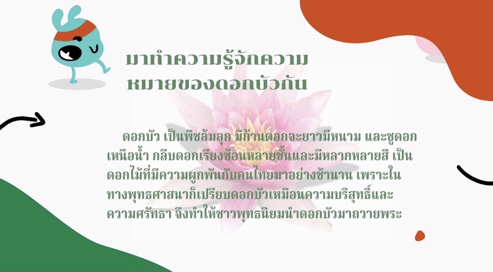 มีการพูดถึงดอกบัวเพื่อทำให้เด็กๆรู้จักดอกบัวแต่ละสายพันธุ์กันมากขึ้น