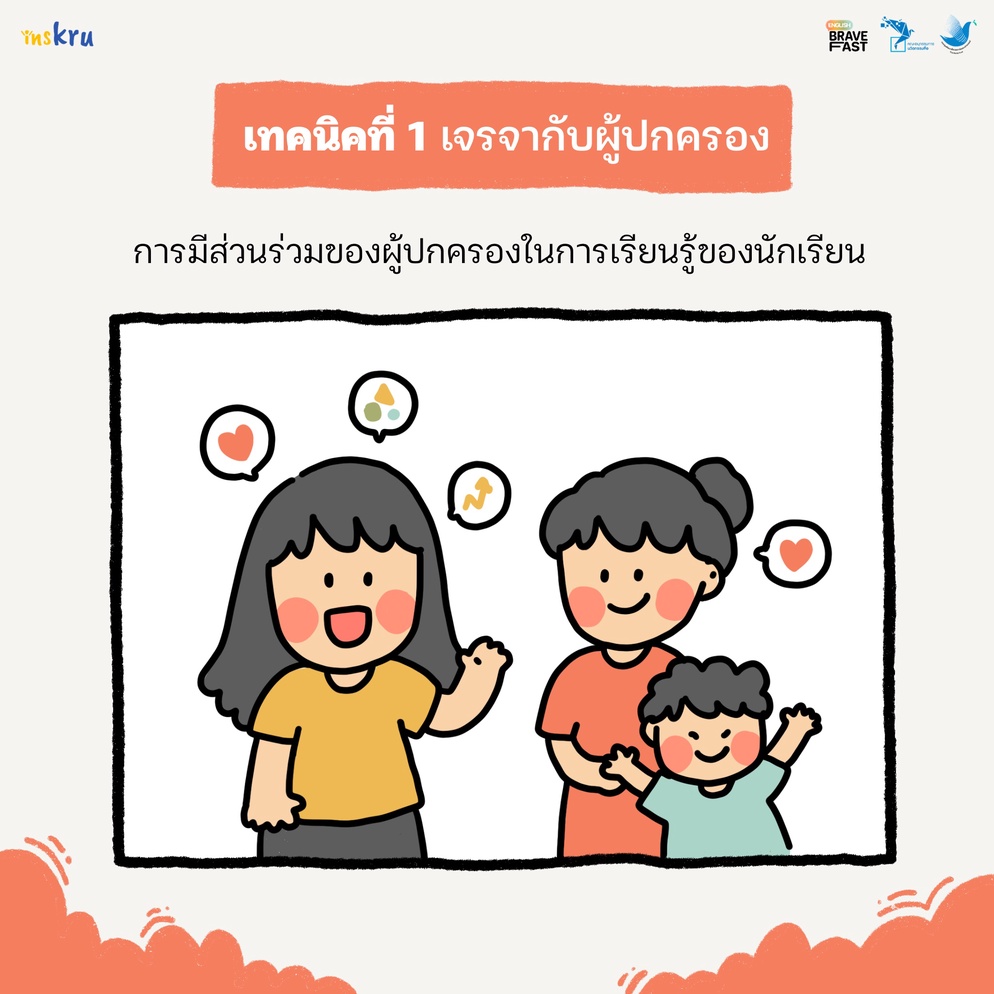 คุณครูควรที่จะเชิญชวนผู้ปกครองเข้ามามีส่วนร่วมกับการเรียนรู้ของนักเรียนด้วย (family engagement) สื่อสารกับผู้ปกครองว่าการเรียนรู้ของนักเรียนจะเกิดขึ้นอย่างเต็มประสิทธิภาพไม่ได้ ถ้าคุณครูไม่ได้รับความร่วมมือ