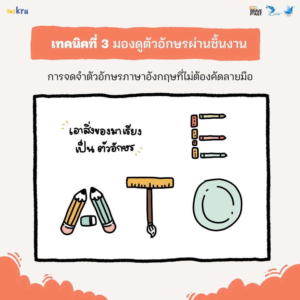 การจดจำตัวอักษร (letter recognition) มีเป้าหมายเพื่อให้นักเรียนได้รับรู้ว่าตัวอักษรแต่ละตัวนั้นมีรูปร่างอย่างไร คุณครูไม่จำเป็นต้องใช้วิธีการเขียนเพียงอย่างเดียว แม้จะมีเป้าหมายเดียวกัน แต่เราสามารถออกแบบการเรียนรู้ให้ถึงเป้าหมายนั้นได้อย่างหลากหลาย