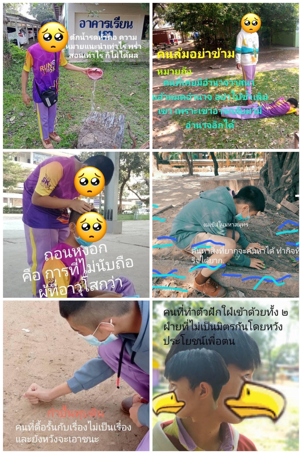 • ต้องทำในคาบเรียน ซึ่งเราพานักเรียนลงไปเรียนบริเวณสนามฟุตบอลและใต้ร่มไทร แต่ปีการศึกษาล่าสุดเป็นคาบเรียนออนไลน์