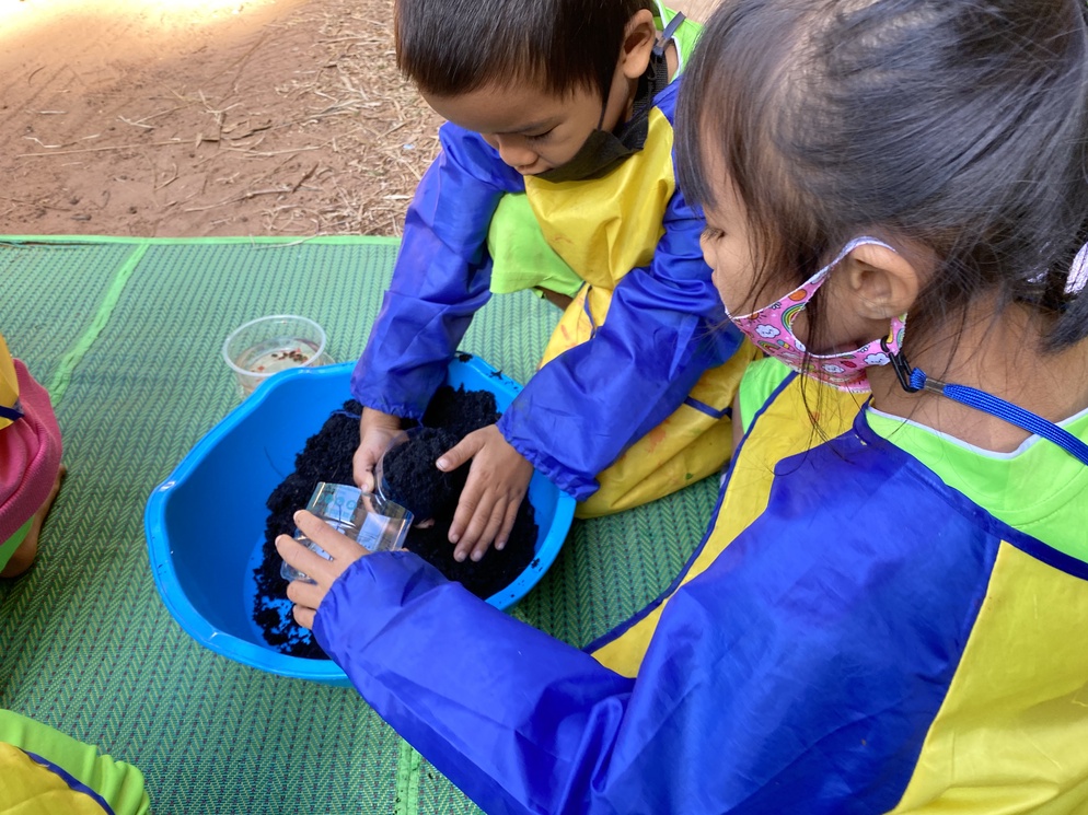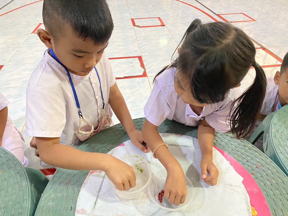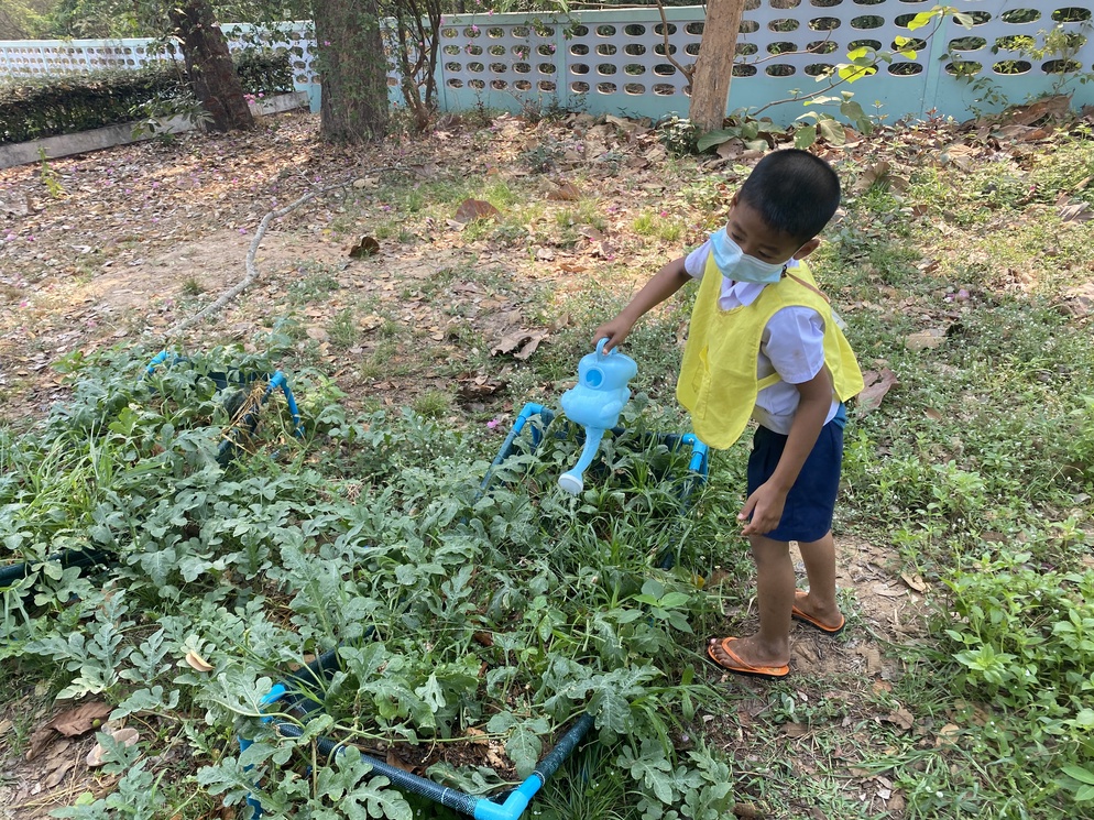 เด็กๆทำเองทุกขั้นตอนจริงๆ ดูแลจนต้นกล้าโตพอลงแปลงได้