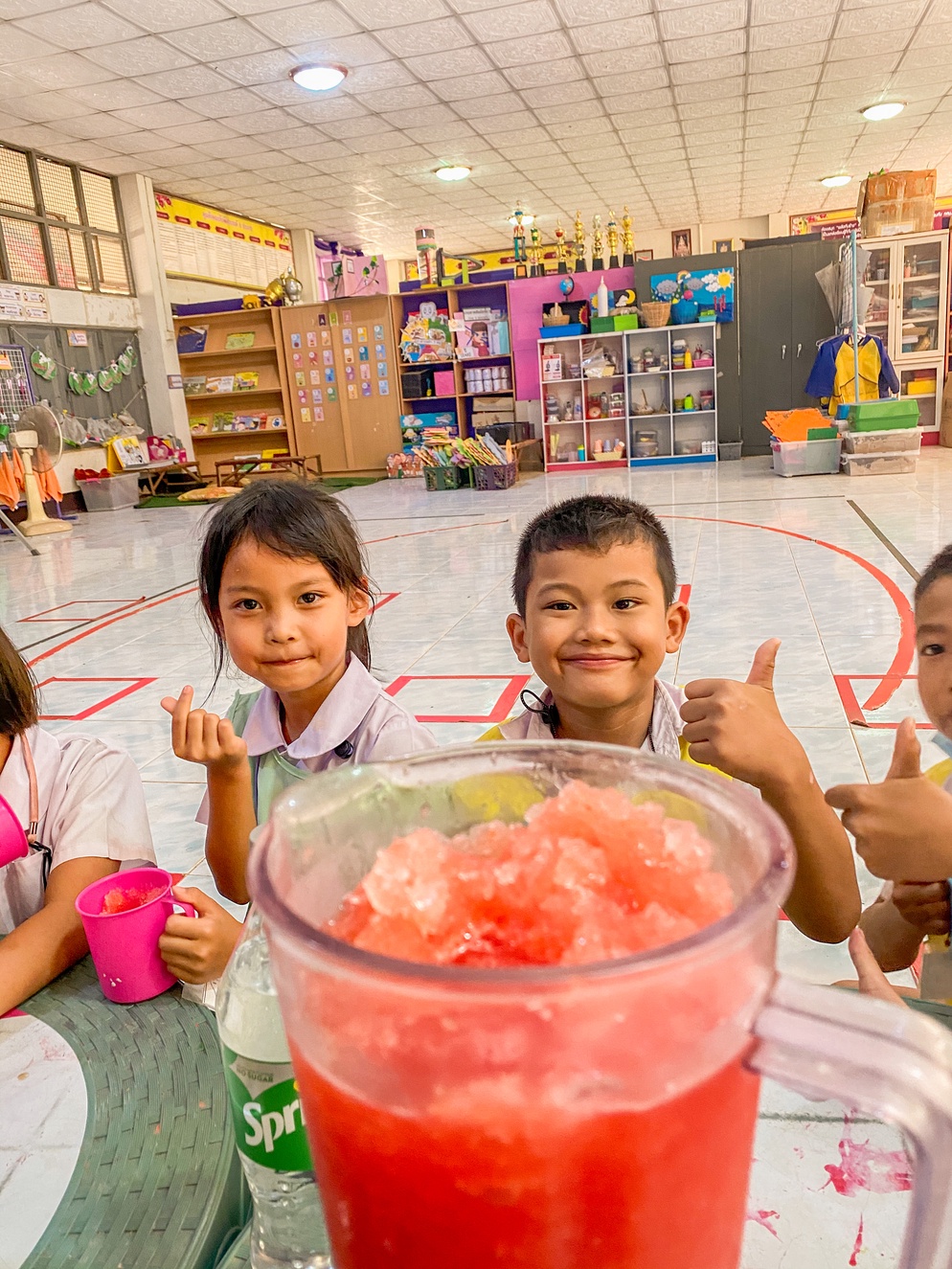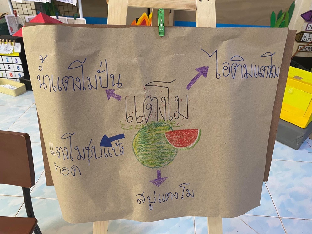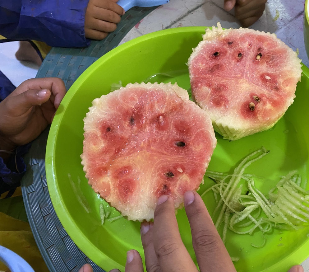 ทำเสร็จแล้วเด็กๆขอเอาไปเต้นประกอบเพลง แตงโมผลใหญ่ๆด้วย