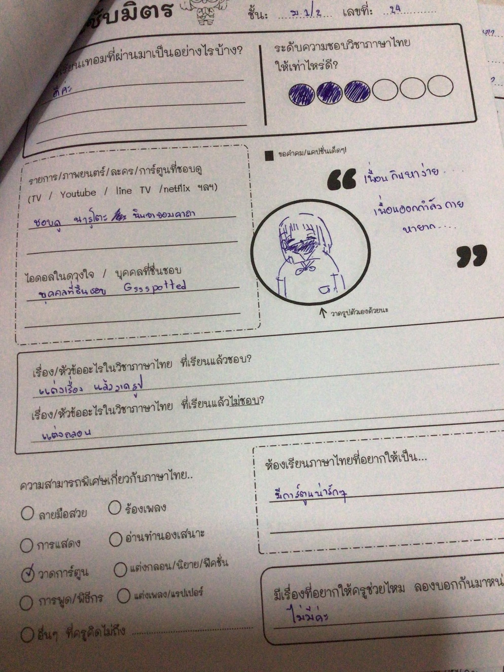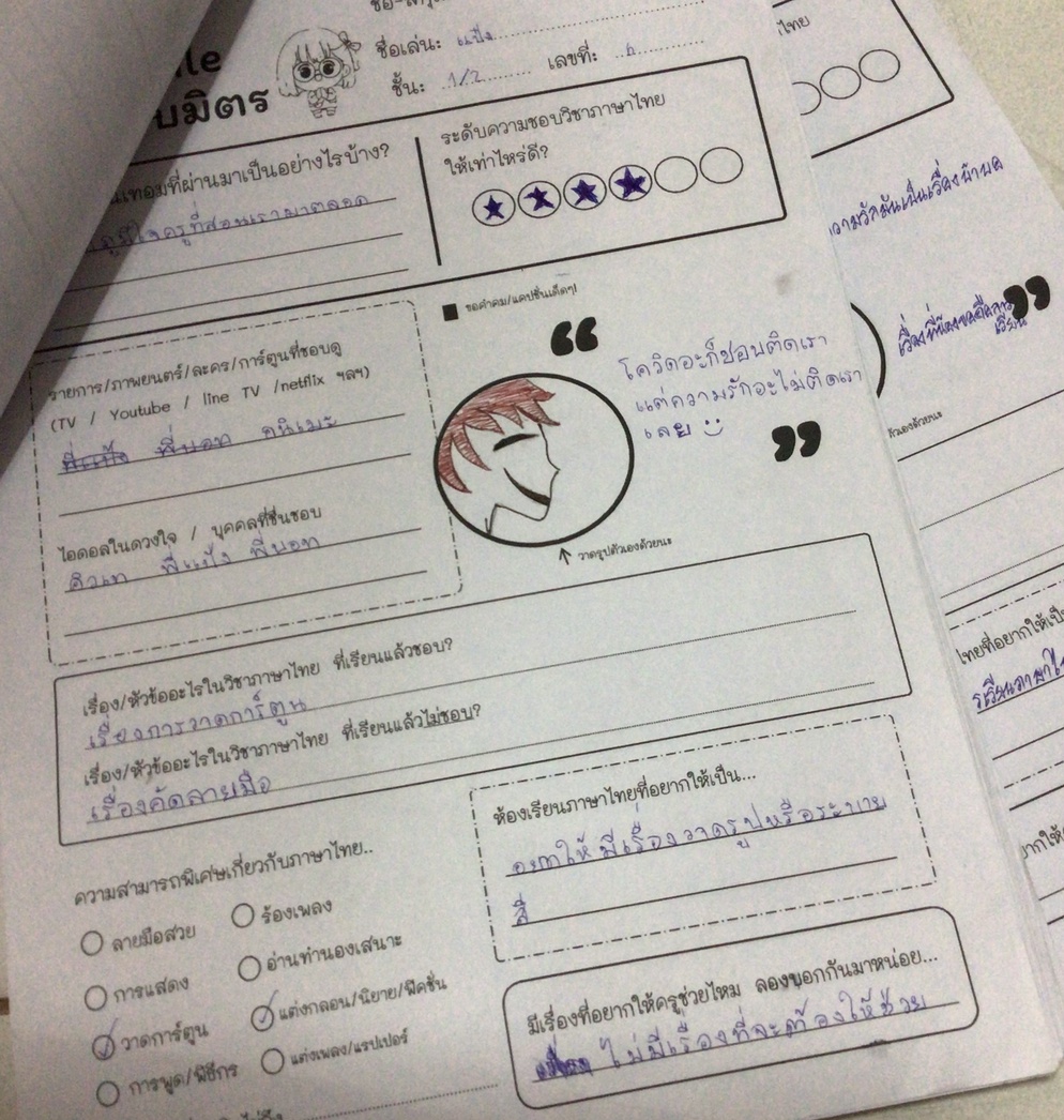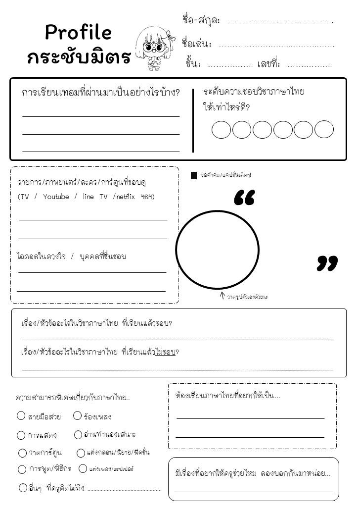 เป็นใบงานที่จะช่วยให้ครูภาษาไทยได้รู้จักนักเรียน