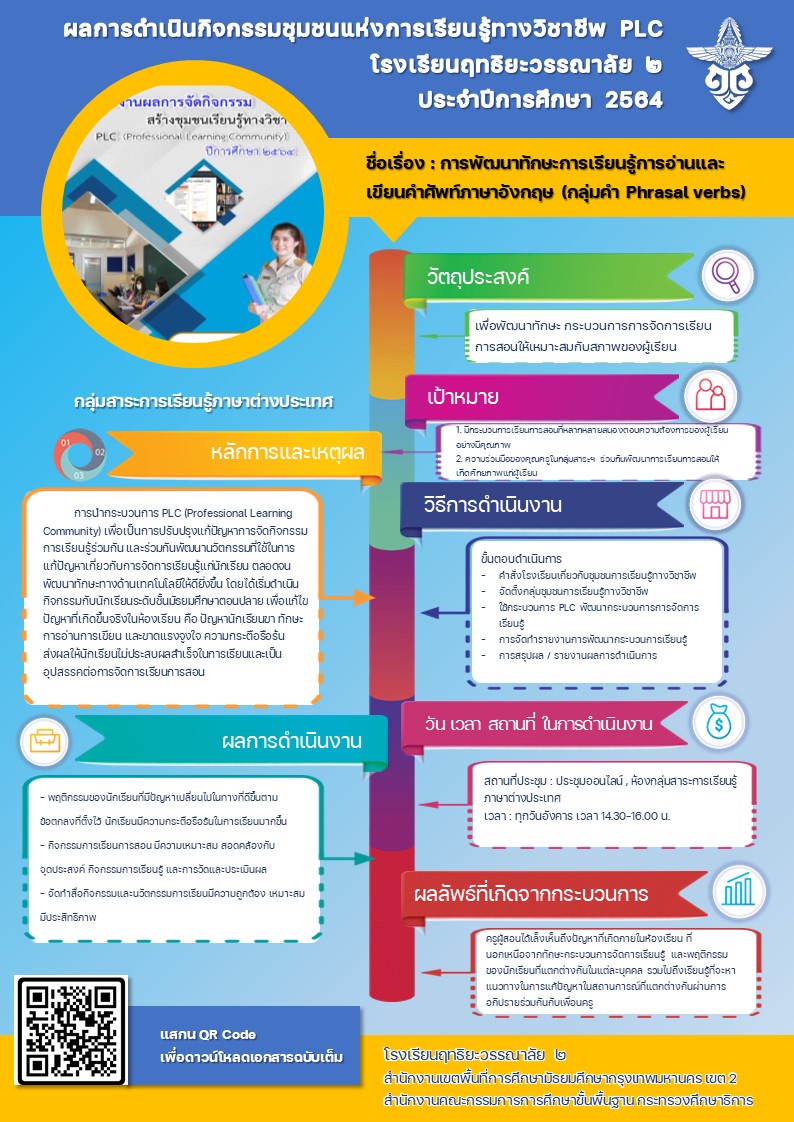 รายงานผลการจัดกิจกรรมชุมชนแห่งการเรียนรู้ทางวิชาชีพ ( Professional Learning Community : PLC ) เรื่อง การพัฒนาและแก้ไขทักษะการเรียนรู้คำศัพท์ภาษาอังกฤษของนักเรียน ระดับมัธยมศึกษาตอนปลาย