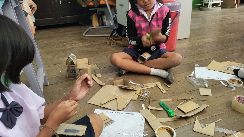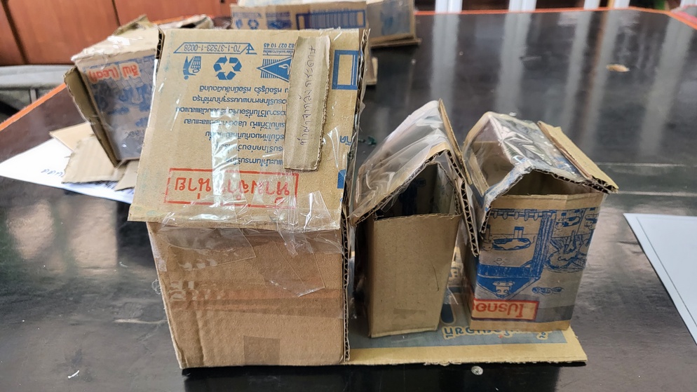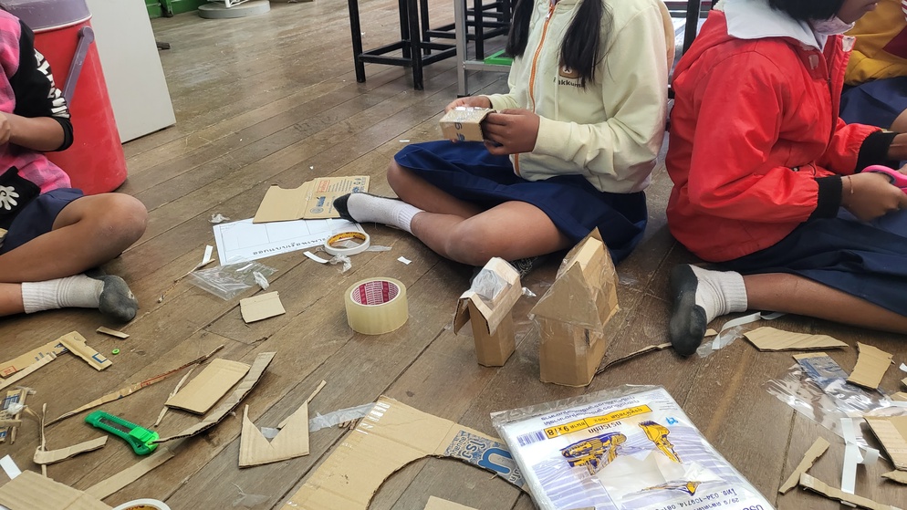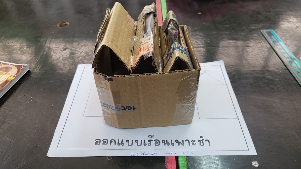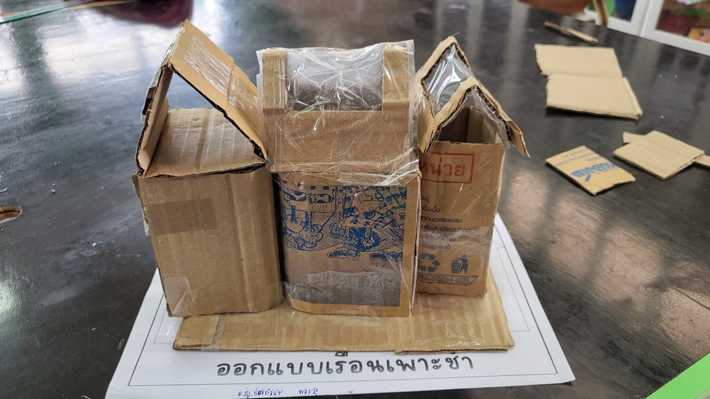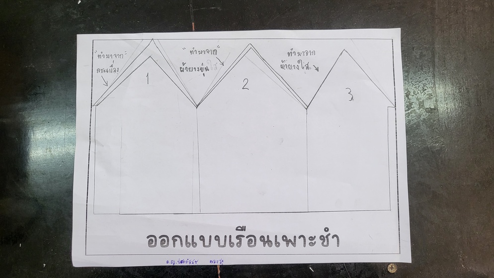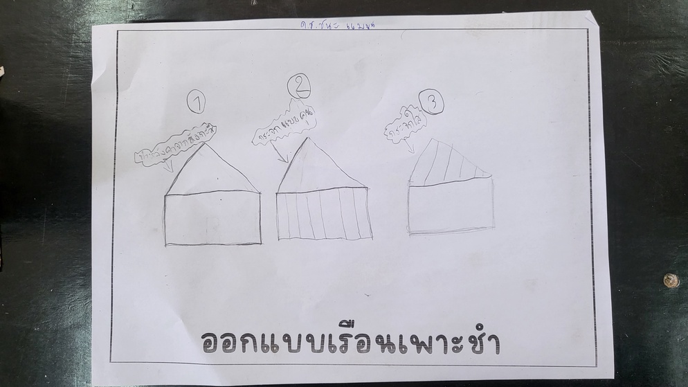 วัสดุที่ใช้ทำหลังคาในตอนออกแบบอาจจะไม่ตรงกับตอนที่ทำจริง เช่น ห้องที่หนึ่งในการออกแบบนักเรียนเลือกใช้สังกะสี แต่ตอนทำจริงเราไม่มีสังกะสีให้จริง ๆ นักเรียนจึงใช้วัสดุอื่นที่เป็นตัวกลางประเภทเดียวกันมาทำแทน