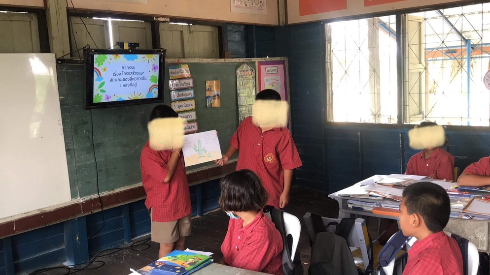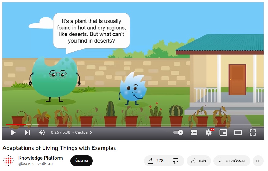 ครูนำเข้าสู่บทเรียนโดยการเปิดวิดีโอภาษาอังกฤษเกี่ยวกับการปรับโครงสร้างและลักษณะของสิ่งมีชีวิต