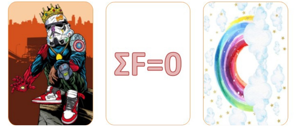 2. แยกการ์ดกฏของนิวตันและการ์ดรูปภาพ ออกจากกัน จากนั้นสับการ์ดรูปภาพ และแจกให้ผู้เล่นคนละ 3 ใบ