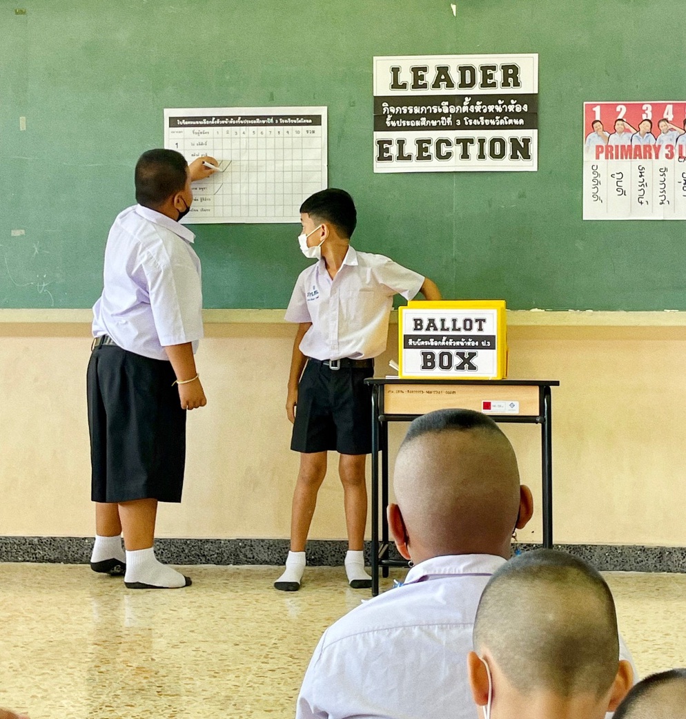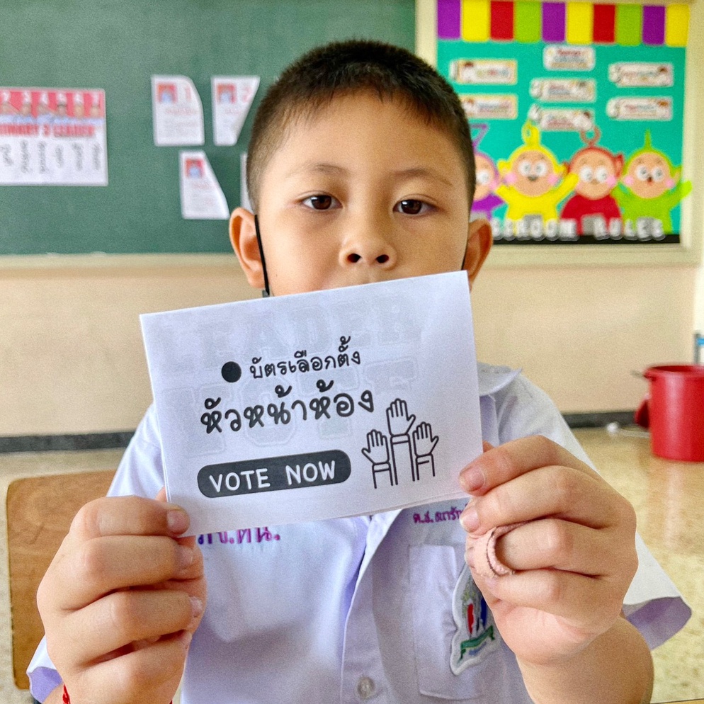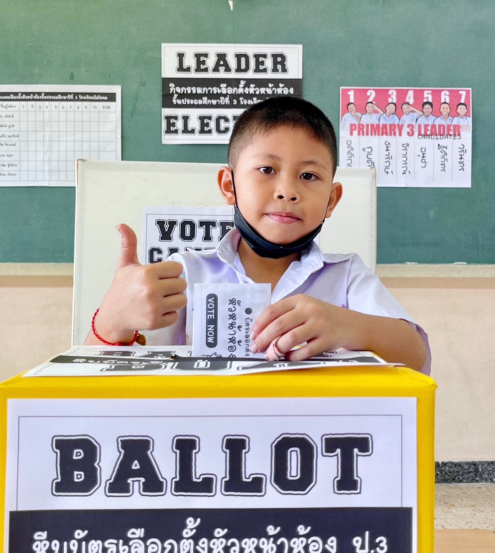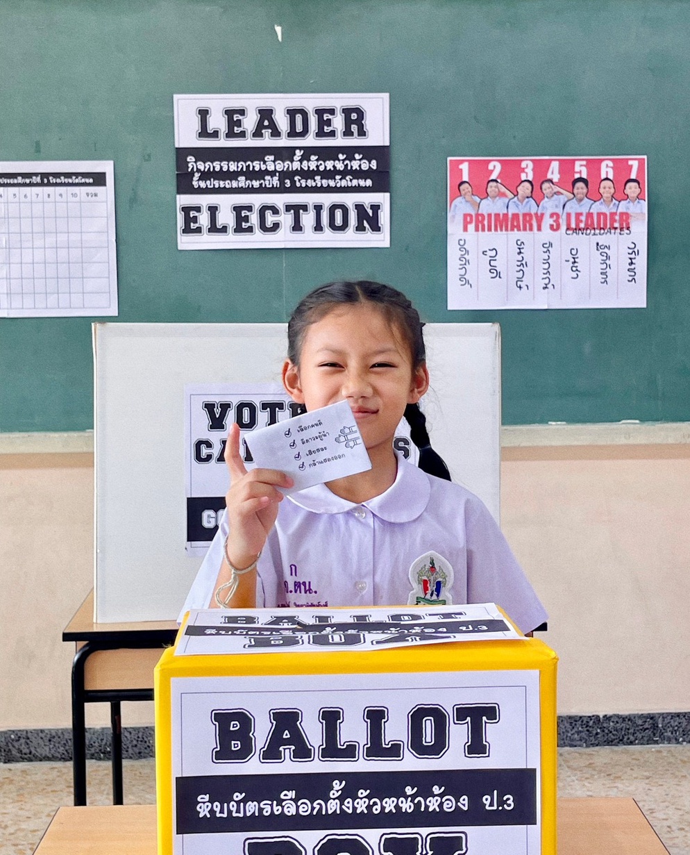 ปีที่แล้วเจอคอมเม้นต์จาก Tiktok ว่า " ยกมือเฉยๆไม่ได้หรอ" จริงๆเราสามารถทำได้ แต่ผมคิดว่า การเรียนรู้ที่ได้ผลที่สุดคือการที่เด็กๆได้ลงมือทำ เราจำลองการเลือกตั้งย่อยๆให้เด็กๆได้เรียนรู้ไปทีละขั้นตอน ตั้งแต่การคิดนโยบาย / ตรวจสอบรายชื่อ / รับบัตร / การเข้าคูหา / การหย่อนบัตร / ตลอดจนการนับคะแนน ทุกคนได้ลงมือปฏิบัติจริง กระบวนการเหล่านี้จะทำให้นักเรียนสามารถเข้าใจหลักพื้นฐานของประชาธิปไตยได้