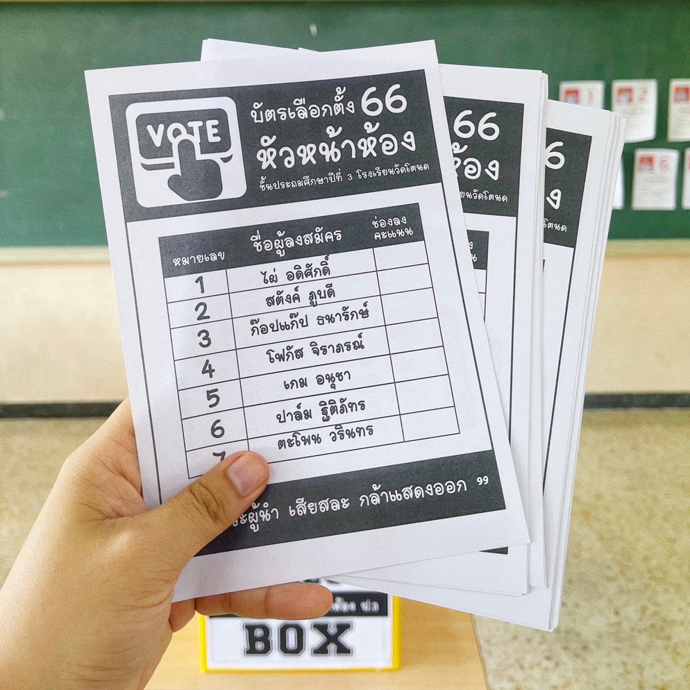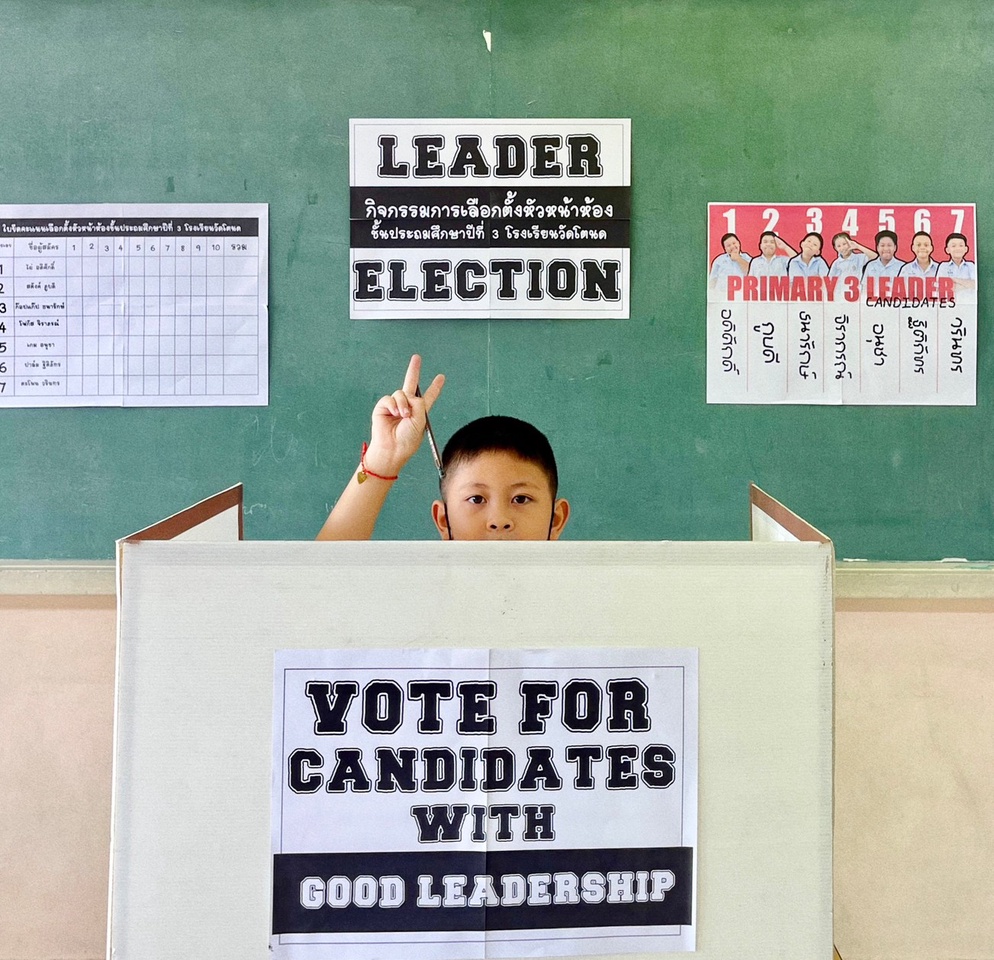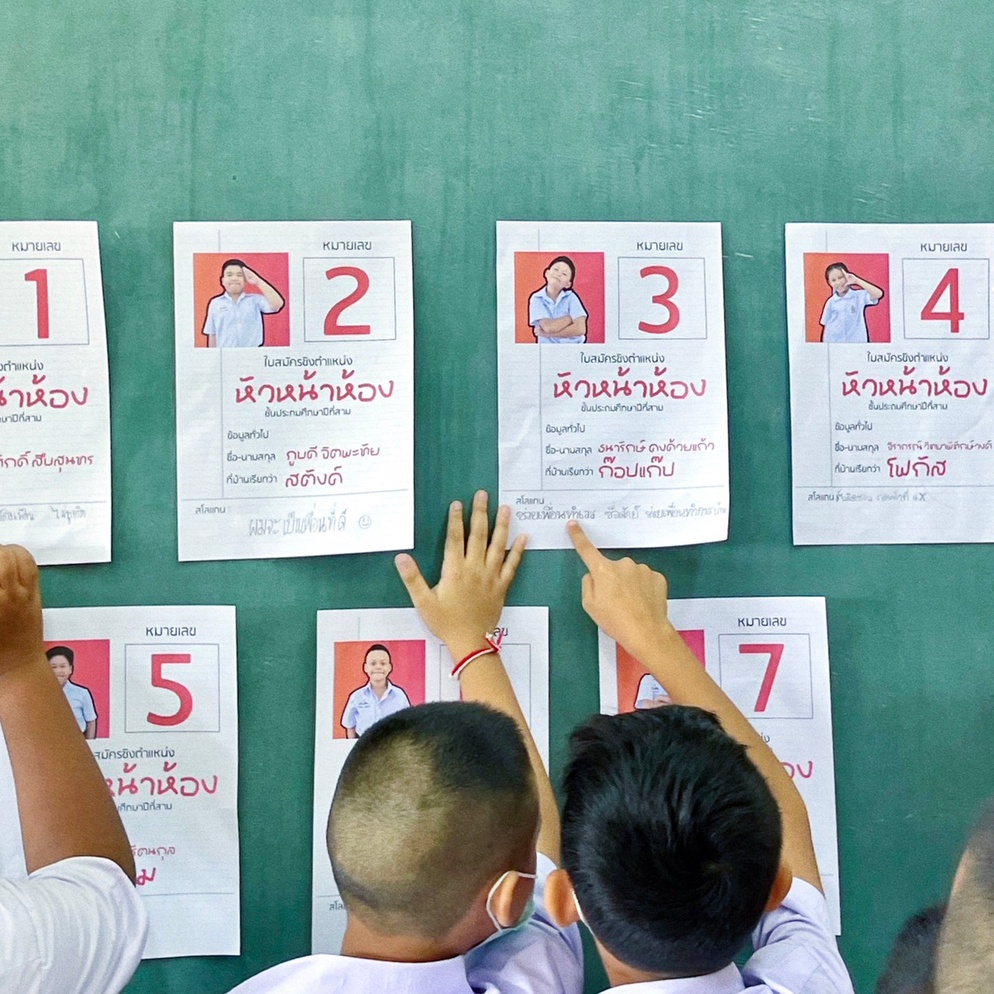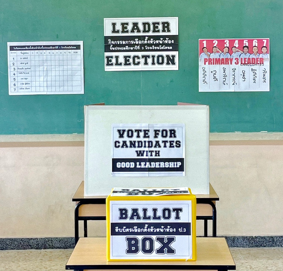 ปีที่แล้วเจอคอมเม้นต์จาก Tiktok ว่า " ยกมือเฉยๆไม่ได้หรอ" จริงๆเราสามารถทำได้ แต่ผมคิดว่า การเรียนรู้ที่ได้ผลที่สุดคือการที่เด็กๆได้ลงมือทำ เราจำลองการเลือกตั้งย่อยๆให้เด็กๆได้เรียนรู้ไปทีละขั้นตอน ตั้งแต่การคิดนโยบาย / ตรวจสอบรายชื่อ / รับบัตร / การเข้าคูหา / การหย่อนบัตร / ตลอดจนการนับคะแนน ทุกคนได้ลงมือปฏิบัติจริง กระบวนการเหล่านี้จะทำให้นักเรียนสามารถเข้าใจหลักพื้นฐานของประชาธิปไตยได้