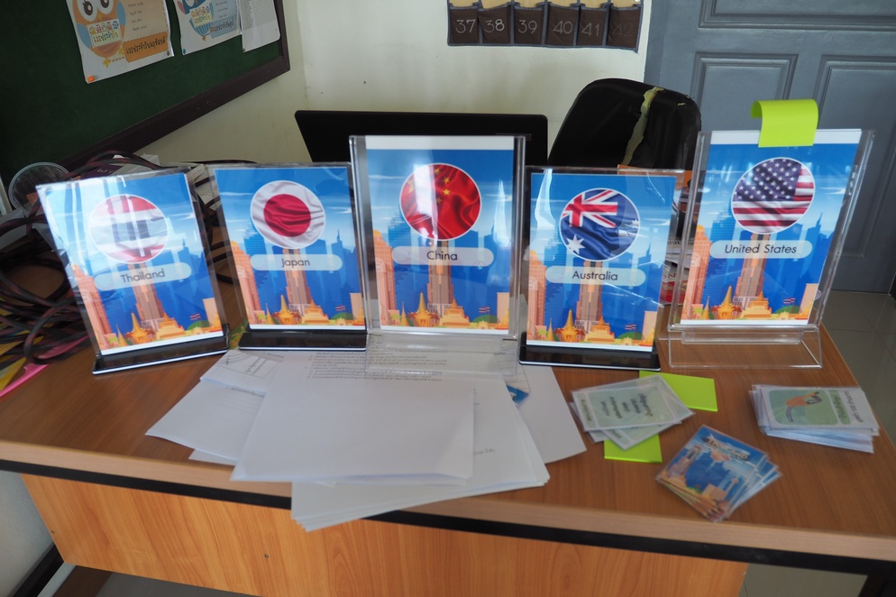 4) จัดบริเวณหน้าห้องเรียนให้แยกเป็นประเทศเพื่อจำลองการค้า ให้แต่ละกลุ่มส่งตัวแทนมาพูดถึงสินค้านำเข้าที่ประเทศของกลุ่มมีความต้องการ (การ์ดความต้องการ) ตรงนี้ครูให้นักเรียนกลุ่มอื่นฟังเพื่อนเพื่อจะได้นำสินค้าของประเทศกลุ่มตัวเองมาขายให้กับกลุ่มที่ต้องการ