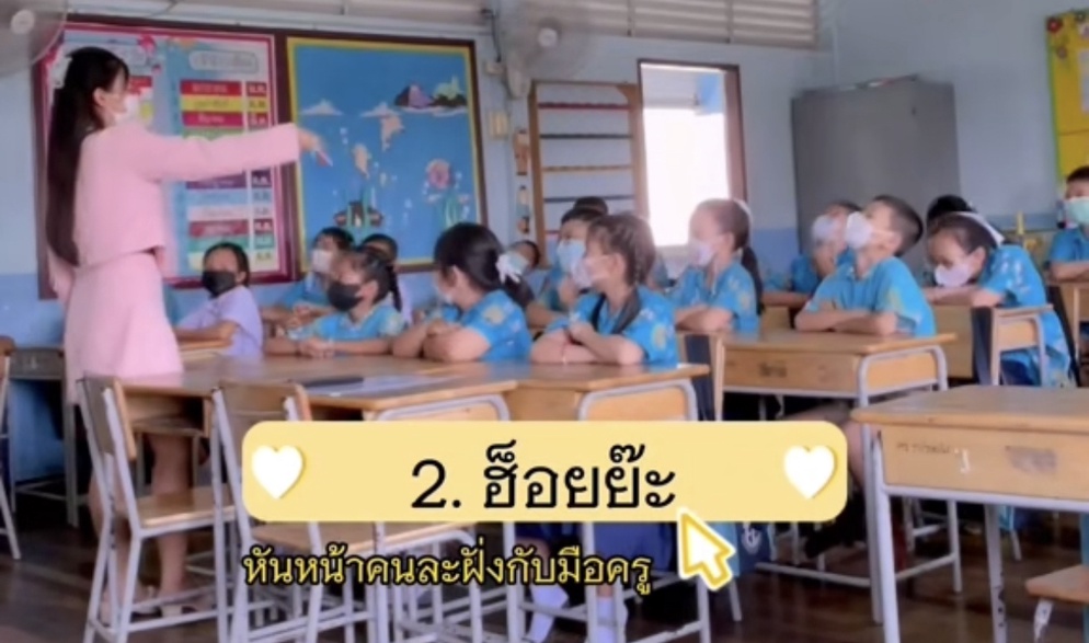 🖊️เมื่อครูพูดคำว่า “ปิ๊งปิ๊ง” นักเรียนต้องนั่งหลังตรง สบตาครู พร้อมเรียน