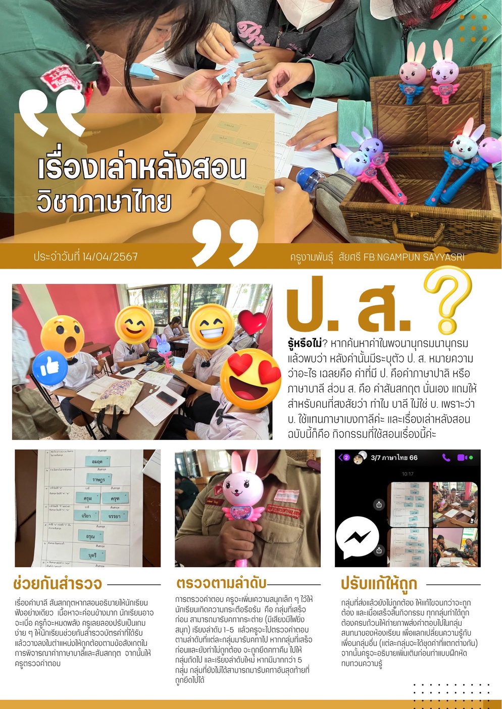 ❤️ กิจกรรมที่ใช้สอนเรื่องคำบาลี สันสกฤต คือ 1) ช่วยกันสำรวจ 2) ตรวจตามลำดับ 3) ปรับแก้ให้ถูกต้อง