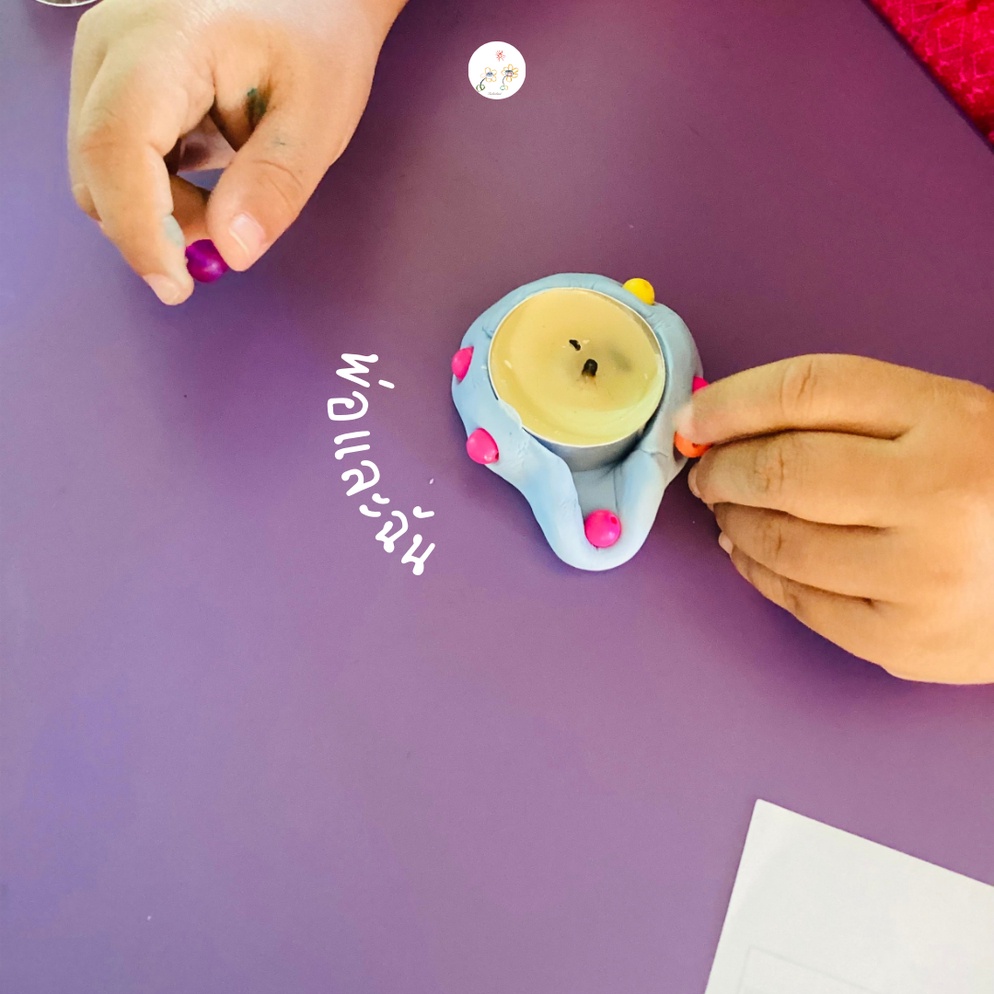 กิจกรรมปั้นแป้งสบู่ ทำเชิงเทียน ในเนื้อกิจกรรมจะเปรียบเด็กเป็นเทียนที่โอบล้อมด้วยกอดของพ่อ