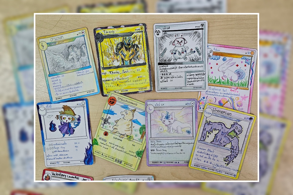 ก็เลยออกแบบมาเป็นกิจกรรม Pokemon tcg Card Game ตอน 4 Force ธีมหลักของกิจกรรมนี้ก็จะเป็นการให้นักเรียนได้ทดลองออกแบบโปเกม่อนของตัวเองโดยเชื่อมโยงธาตุ ลักษณะโปเกม่อน หรือ พลังโจมตีกับแรงธรรมชาติทั้ง 4 ที่ตนจุ่มได้ครับ